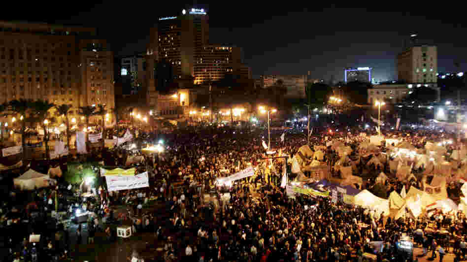 Protesters gather in Tahrir Square in Cairo, Egypt, on Tuesday. Tens of thousands of Egyptians also gathered outside the presidential palace in Cairo in demonstrations that turned violent as tensions grew over President Mohammed Morsi's seizure of nearly unrestricted powers.