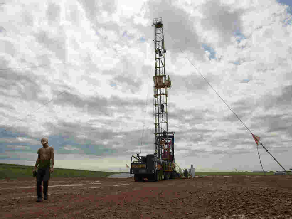 Austin Mitchell walks away from an oil derrick outside Williston, N.D., in July 2011. North Dakota is now the No. 2 producer of oil in the U.S. behind Texas.