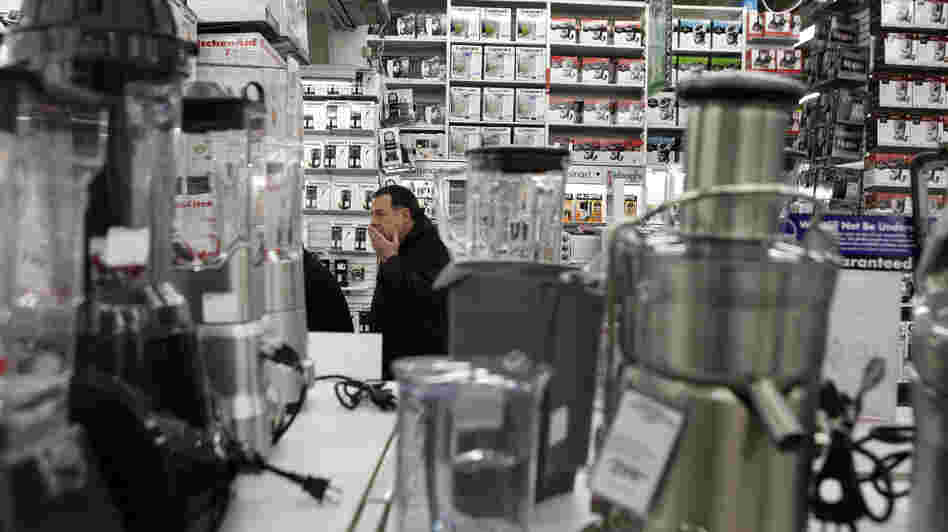 A man takes a closer look at kitchen appliances while shopping inside of a Bed Bath Bath & Beyond store in New York.