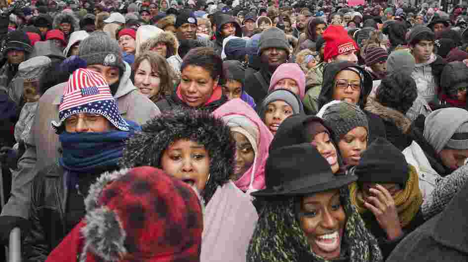 Out on the Mall, the fact that President Obama is being ceremoniously sworn-in on the same day as Martin Luther King Day held a certain significance for some visitors.