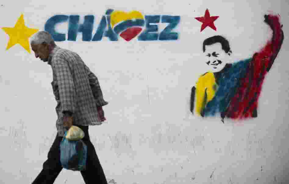 A man walks past a mural of Venezuelan President Hugo Chavez in Caracas, on Jan. 11.
