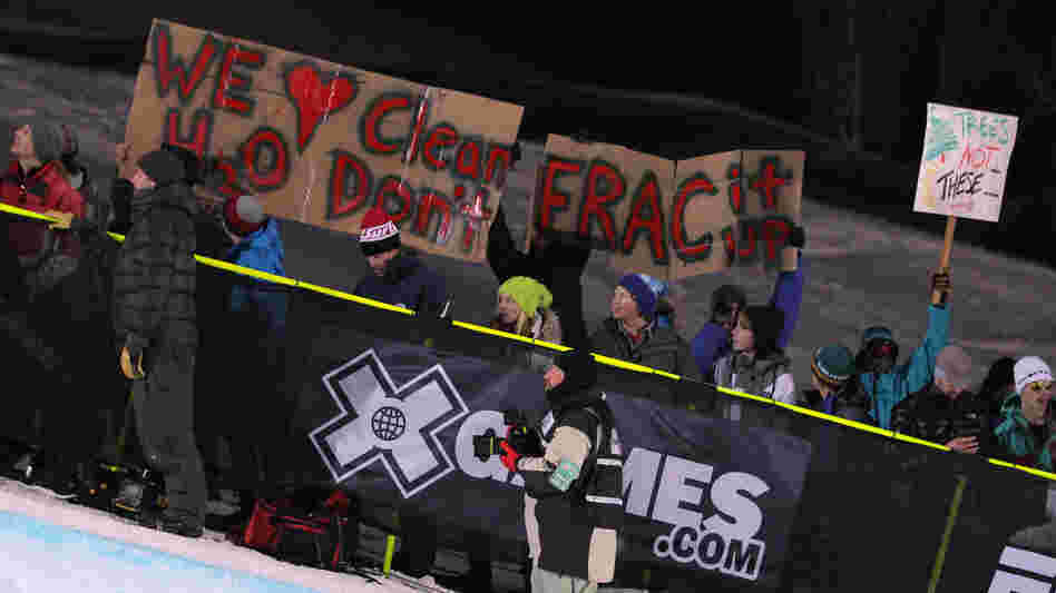 Opponents of fracking demonstrate during the Winter X Games 2012 in Aspen, Colo.