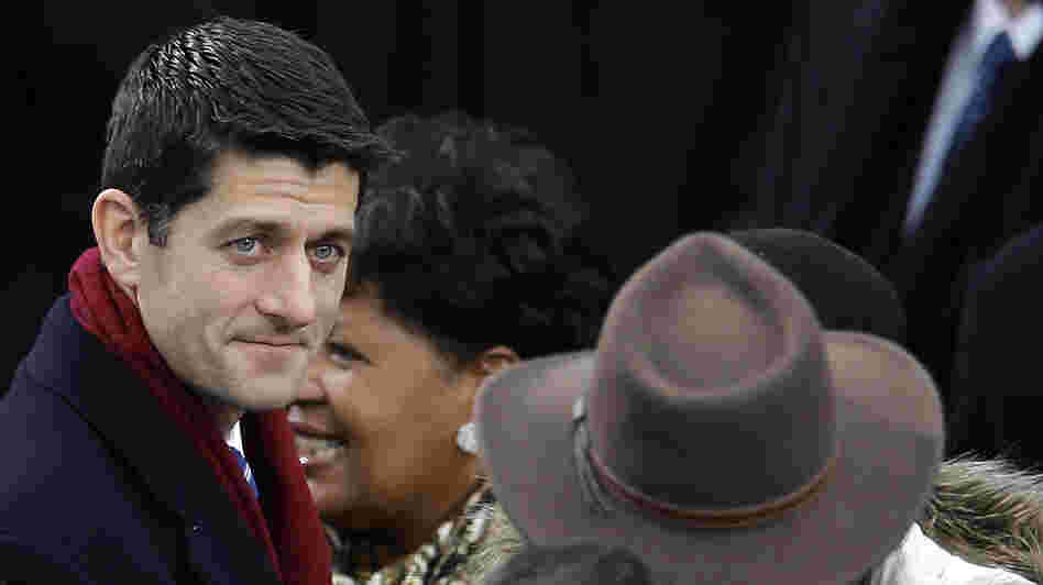 Rep. Paul Ryan, R-Wis., arrives at President Obama's inauguration Monday on Capitol Hill. On Tuesday, Ryan, who ran for vice president on the losing Republican ticket last year, said Obama's inaugural address showed a "proud and confident liberal progressive."