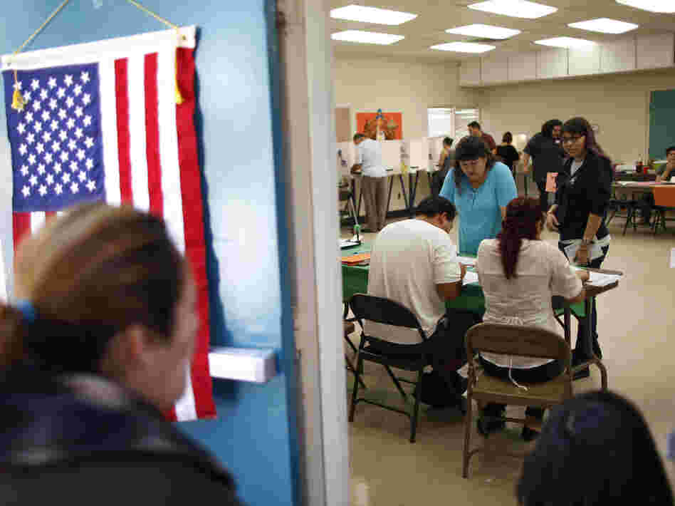 Latino voters, shown here on Election Day in Los Angeles, will grow in electoral power by the year 2020.