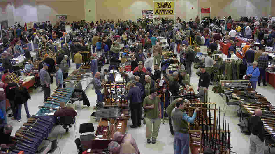 Gun enthusiasts flock to the New Eastcoast Arms Collectors Associates Arms Fair in March 2012 in Saratoga, N.Y. Some local residents would like the next show to be canceled, in light of the Newtown, Conn., school shootings.