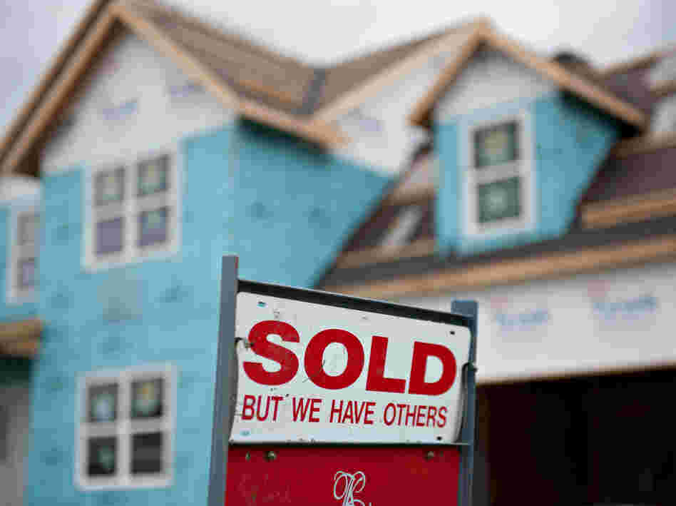 A "sold" sign outside a home under construction last fall in Peoria, Ill.
