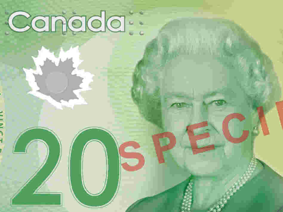 Bank of CanadaA hubbub's been building up north for the past week or so about the maple leaf on Canada's new $20 bills.