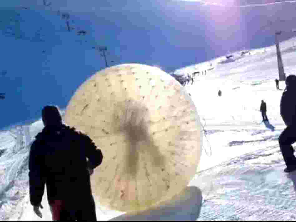 YouTubeAn edited version of the video made by a friend as the "zorb" rolled down the mountain. A longer version is posted here.